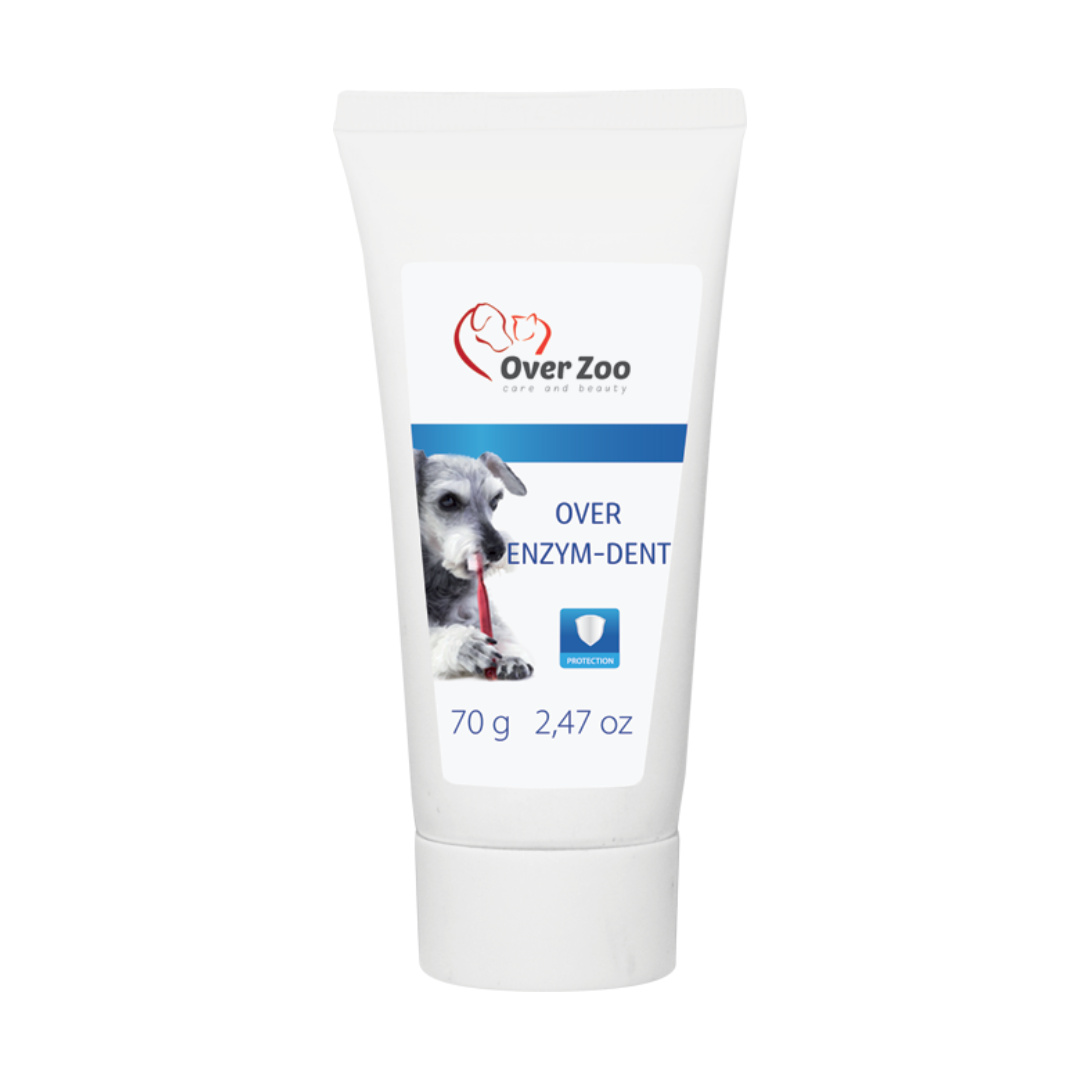 Over Enzym Dent is an innovative toothpaste for dogs. Due to the inclusion of enzymes, it efficiently decomposes organic substances being teeth deposits. This product prevents the formation of tartar.